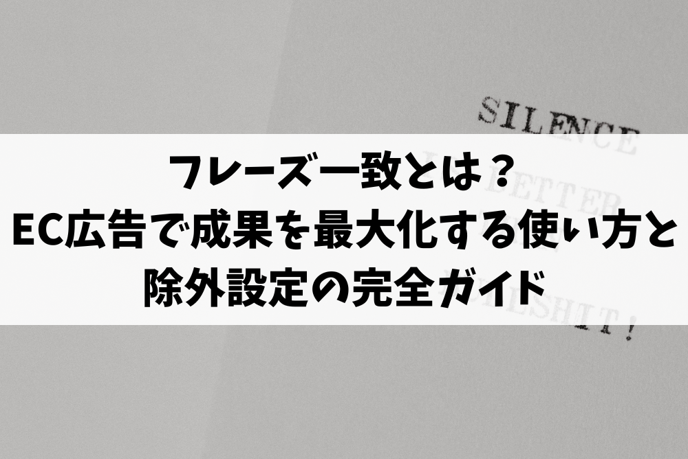 本記事では、フレーズ一致の仕組み、他マッチタイプとの違い、ECでの効果的な使い方、除外キーワード設定、実例、KPI改善まで徹底解説。この記事を読めば、広告効果を最大化し、売上アップにつながる“正しいキーワード戦略”が身につきます。