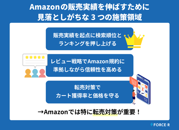 他のECモールと異なり、Amazonでは転売対策が売上を伸ばしていく上で非常に大切です。
